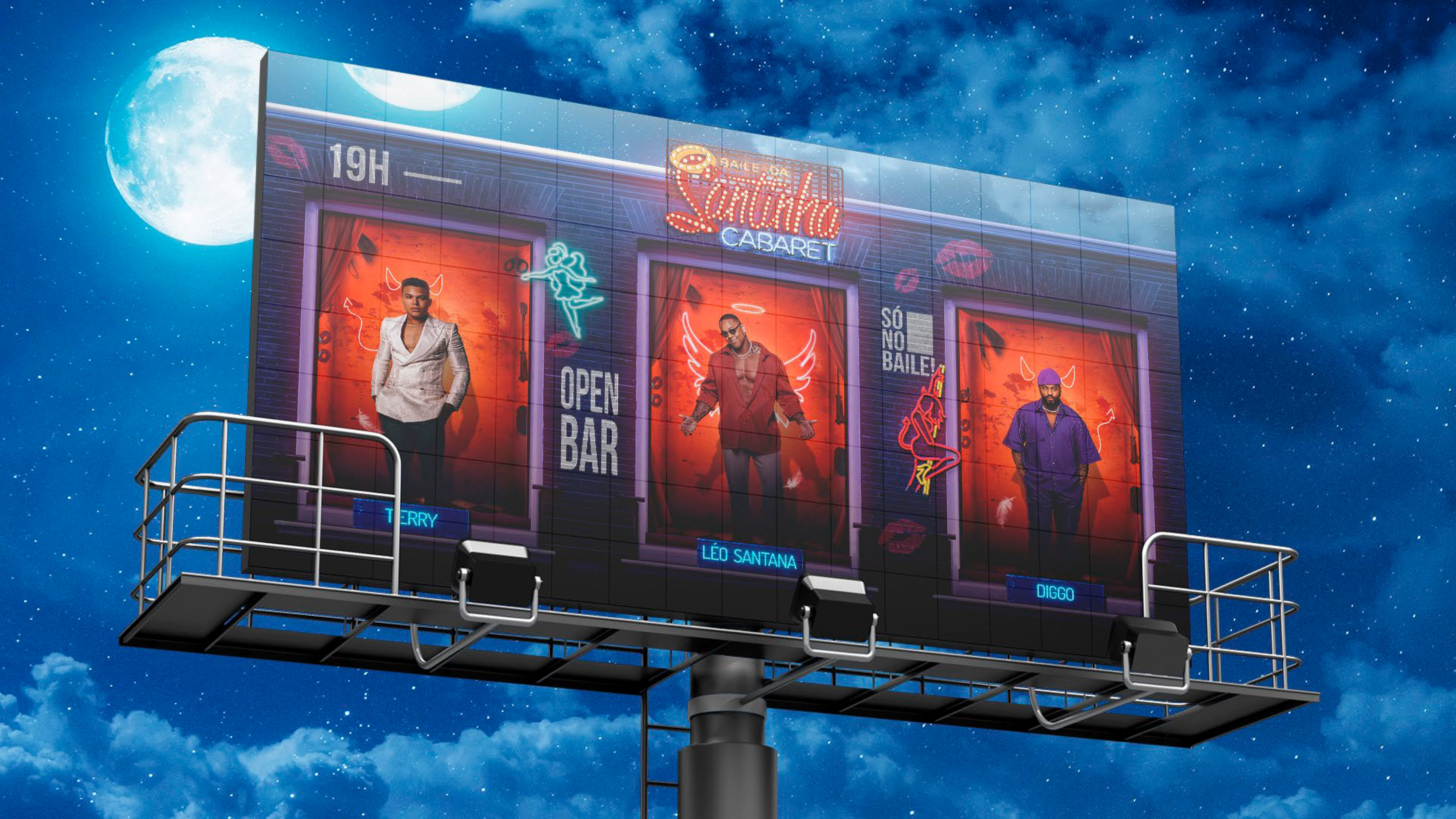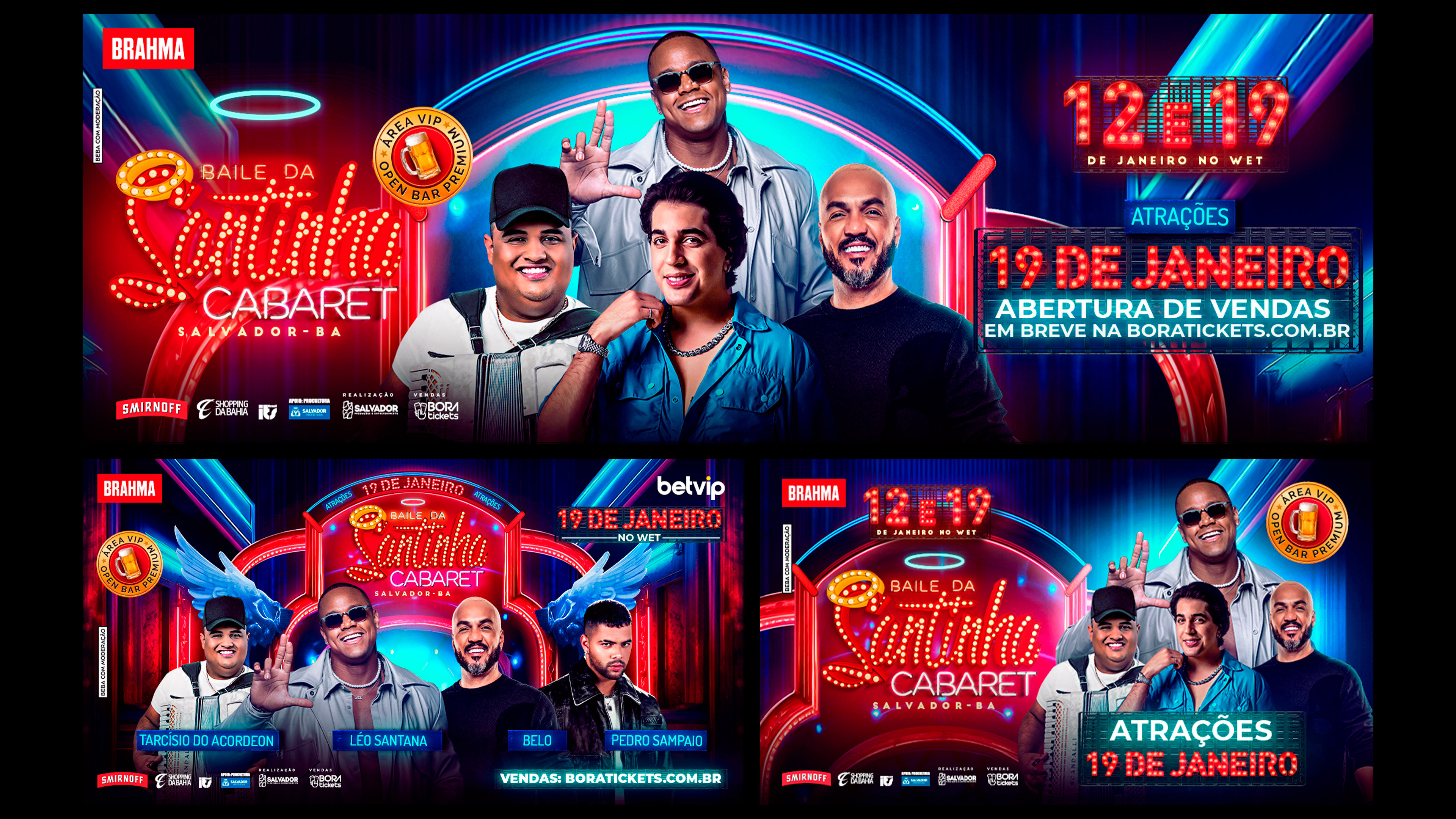O Time LS deu vida à atmosfera do Cabaret nesta edição do Baile da Santinha. Atuei na definição da assinatura visual e nas peças de movimento, criando a base estética para que o time pudesse destrinchar o projeto em uma vasta gama de mídias offline e sociais. Uma entrega conjunta que uniu visão criativa e execução estratégica para um dos maiores eventos do verão baiano.